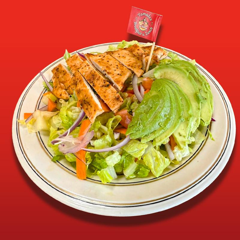 Lettuce, grilled chicken, cucumber, avocado, spinach, onion, tomato, parmesan cheese. Dressing options: Caesar, italian, thousand island & ranch.