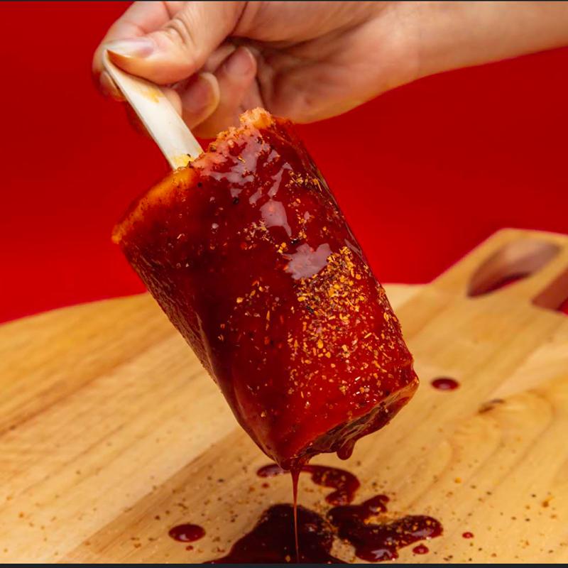 Frozen mango popsicle with chamoy & tajin.