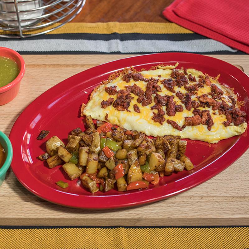 Omelette with cheese & chorizo. Accompanied with our house potatoes & a side of toast. May substitute toast for corn or flour tortillas.