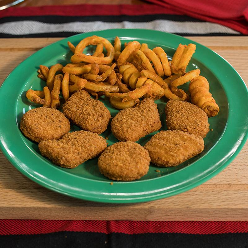 7 chicken nuggets with your choice of French fries, Curly fries or Onion rings (+$2.00).