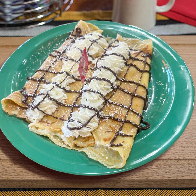 3 crepes filled nutella, topped with whipped cream, powdered sugar & nutella. Add fruit (+$2.00).