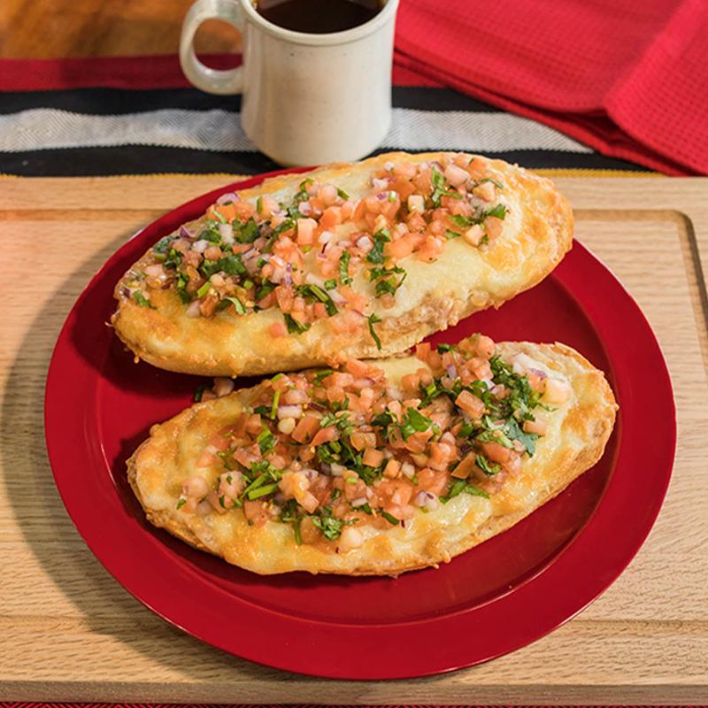 Roll Bread topped with refried beans , melted cheese, comes with pico de gallo & salsa on the side. Chorizo (+$3.00), An egg (+$2.00 ea).