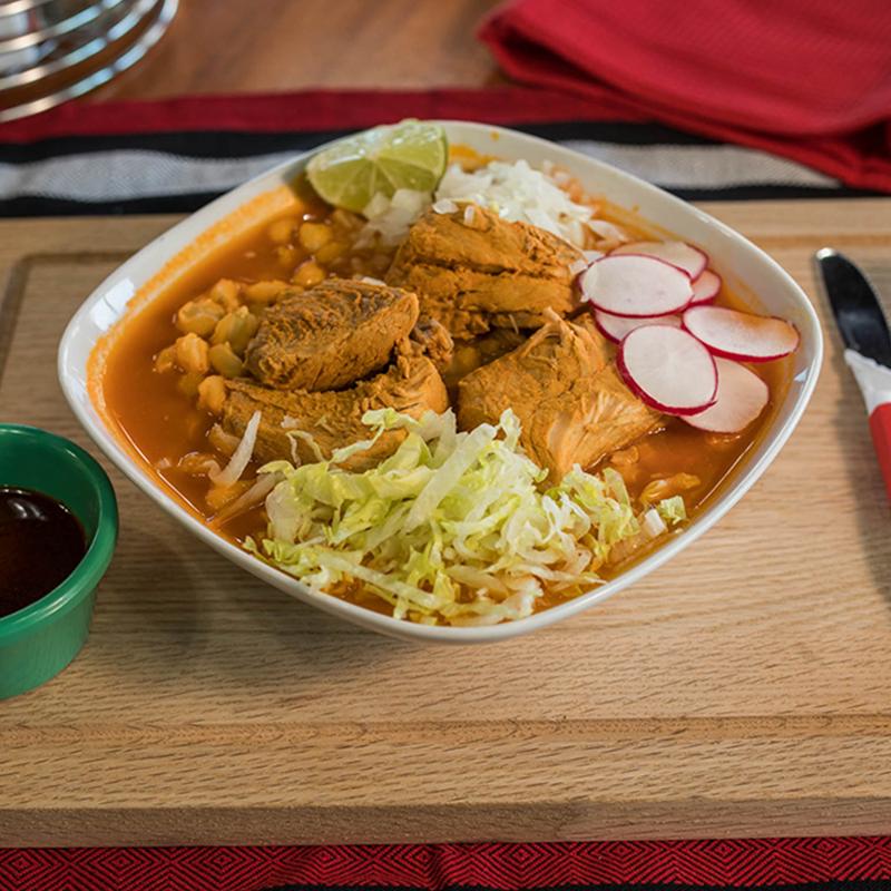 Traditional mexican soup with pork meat. Comes with onion, lettuce, radishes & tostadas. Only Friday, Saturday & Sunday.